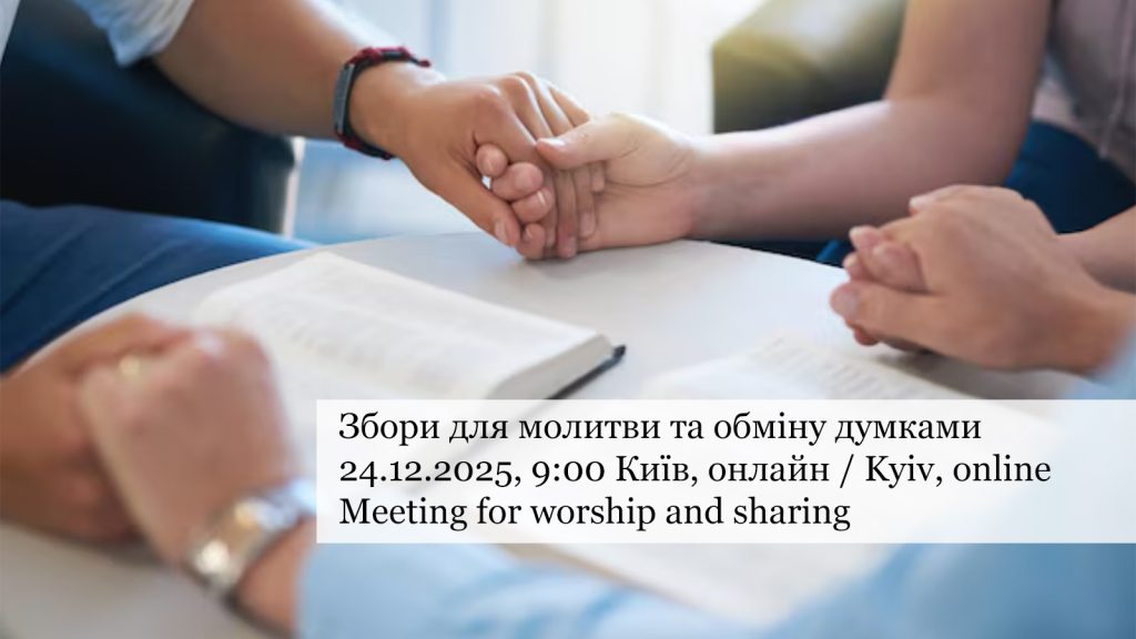 The worship sharing is organized by the religious organization “Religious Community of Quakers: Meeting of Friends of Ukraine” together with the civic organization “Ukrainian Pacifist Movement” with the scientific and technical support of the private scientific organization “Institute of Peace and Law” and the information support of the website “FREE CIVILIANS. Herald of Peace and Conscientious Objection”.